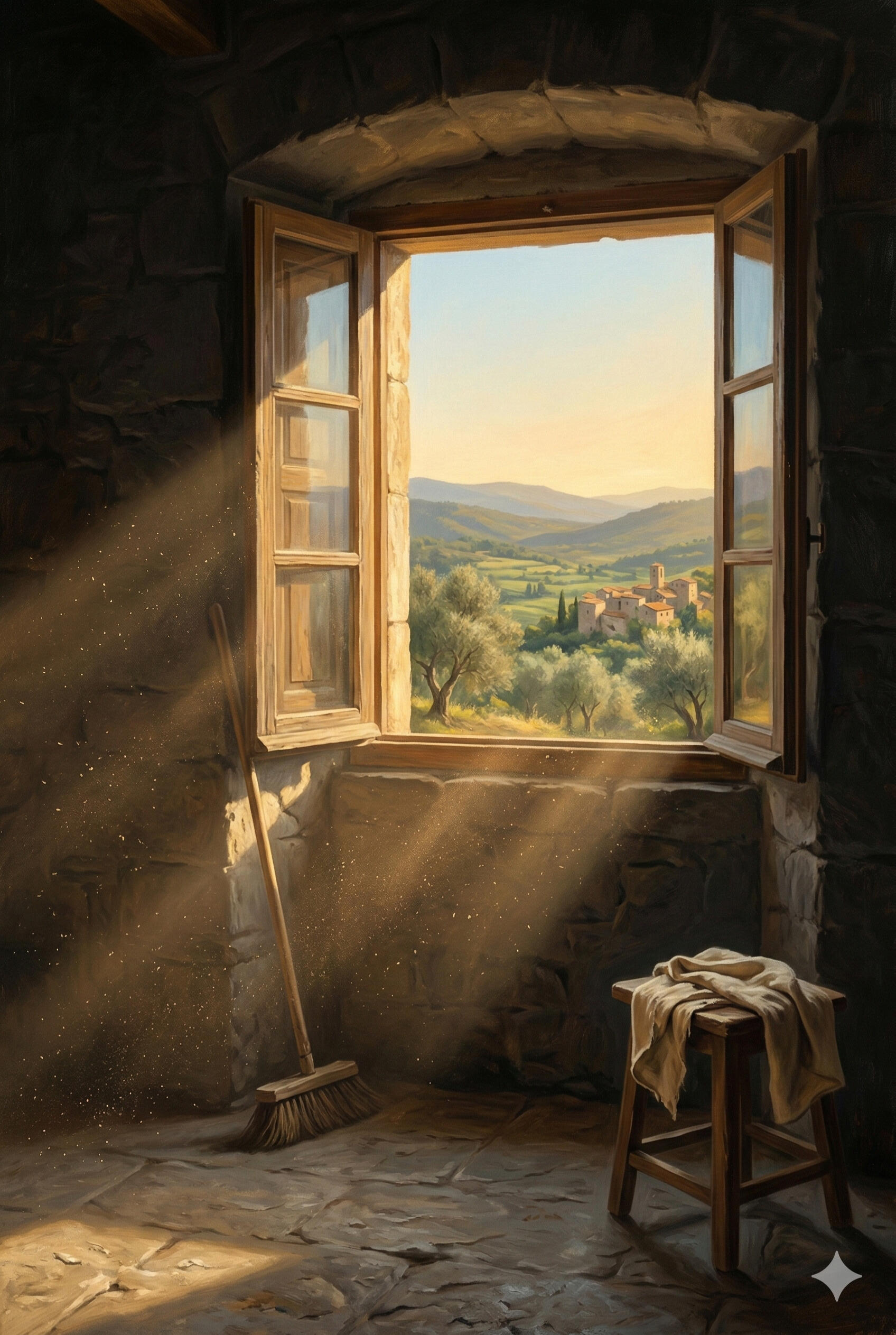 Alguien en el umbral de la puerta: Ya no eres el que fuiste ayer, y tampoco el que hace un año. Eres una persona nueva, con convicciones nuevas, creencias nuevas, que ha sabido empezar a entender el mundo que le rodea de otra manera; Ya sea con certezas o con corazonadas nacidas del corazón, pero que están en este punto de: ¿Me aventuro a lo que siento o me quedo en la zona de confort?Alguien limpiando una casa vieja: Necesitas desprenderte de tu antiguo yo, de reprogramarte, de ver la vida de forma diferente, de soltar, de limpiar y de transmutar lo que ya no necesito. Es hora que empiece a escucharme a mi y mi mundo interior y que limpie todo aquello que ya no debe estar.
